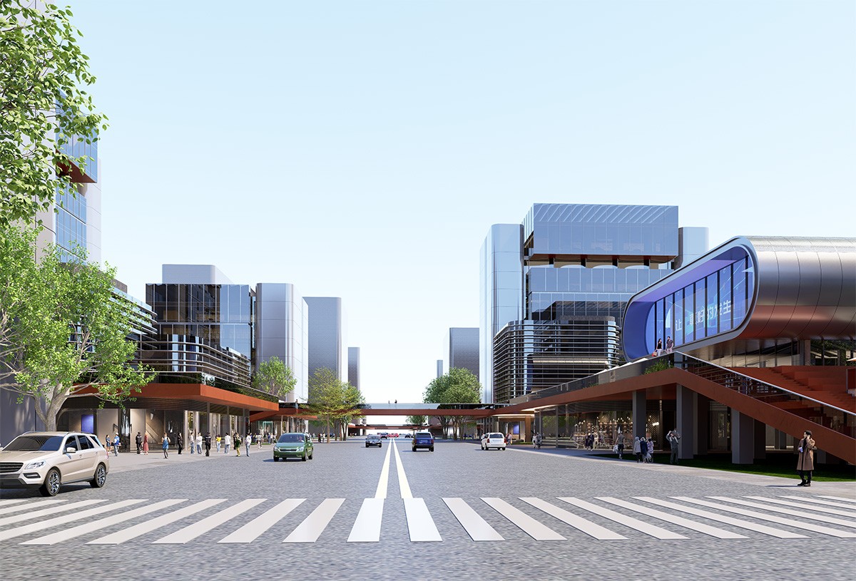 方案提出支撑体与立体仓的概念,希望通过该地块设计实现多层地面,立体互联,多样共生的新时代园区建筑,打造经济适用的低碳建筑,科技创新的现代地标,丰富活跃的城市场所,复合共享的园区空间,从而提升地块价值。建筑由南侧向北侧城市绿化带高度逐渐降低,塔楼沿外侧布置,形成完整的城市界面,中心围合出大花园,提供舒适宜人的园区环境,同时利用首层裙房屋面,将二层设计为室外平台花园,打造双首层概念。